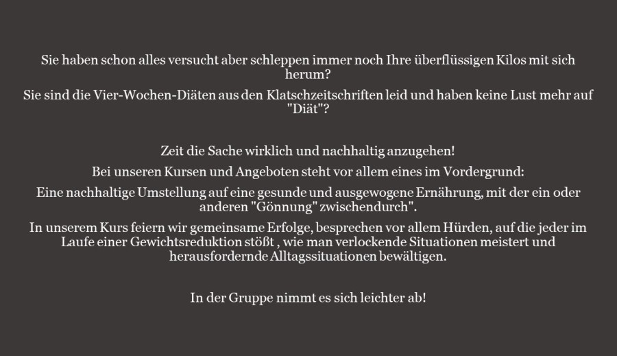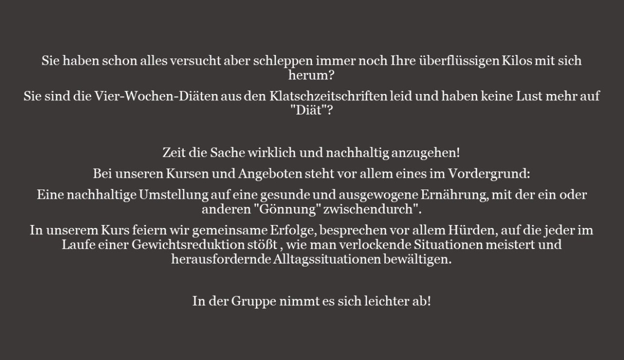 Sie werden über einen Zeitraum von 8 Wochen begleitet. Hier bekommen Sie Hilfestellungen und enge Betreuung. Hierdurch ist ein Aufgeben fast unmöglich.