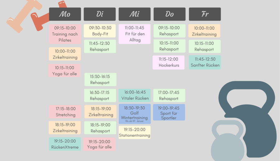 Den aktuellen Kursplan finden Sie oben. Bitte beachten Sie, dass nicht alle Kurse immer das ganze Jahr über angeboten werden. Auf Nachfrage informieren wir Sie gerne, wann Ihr Wunschkurs das nächste Mal stattfindet.