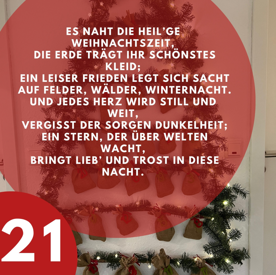 Türchen 21 – Winterpoesie Kurz vor Weihnachten möchten wir euch ein paar ruhige, warme Zeilen schenken. Ein Gedicht, das die letzten Adventstage begleitet und vielleicht ein bisschen Besinnlichkeit zurückbringt. ❤️