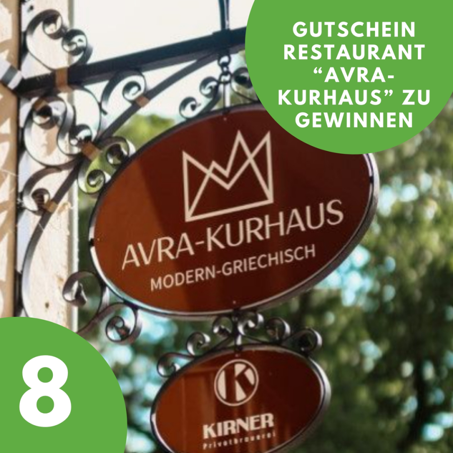 Heute habt ihr die Chance auf 2 Gutscheine für das Restaurant AVRA-Kurhaus – perfekt für griechische Leckereien und einen Abend voller Genuss. ✨